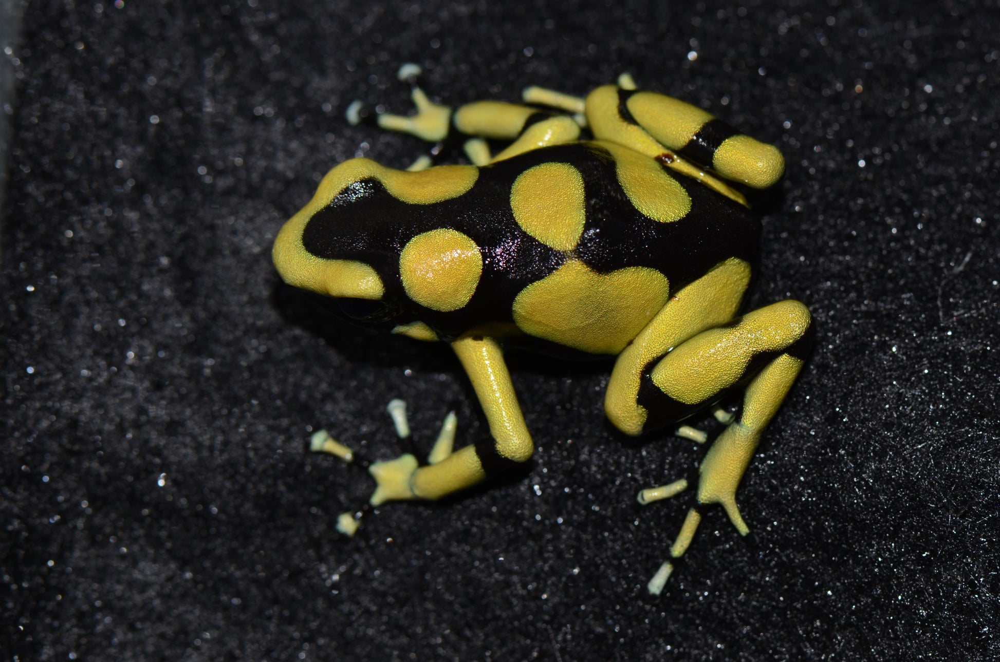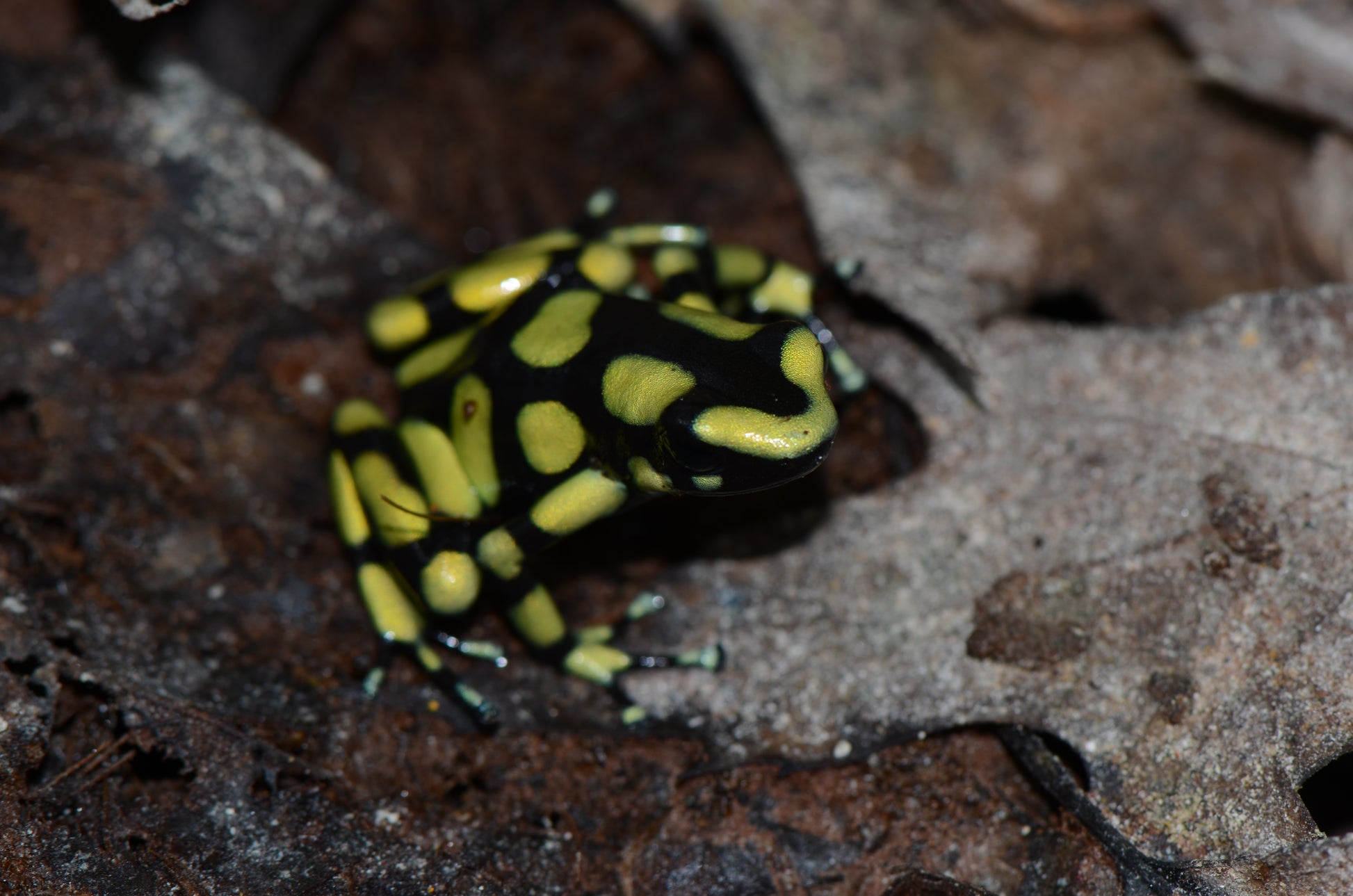 This vibrant yellow to greenish morph originates near the town of Capurgana, Colombia and thus is often refered to as the Capurgana auratus. In captivity we find this morph to be quite bold. These do well in pairs or small groups, breeding well in either arrangement.