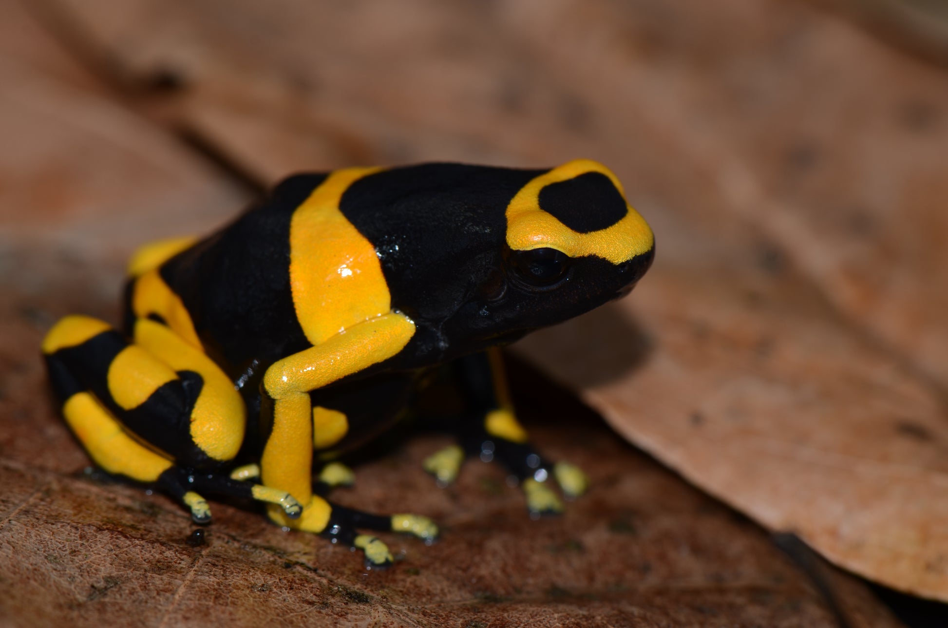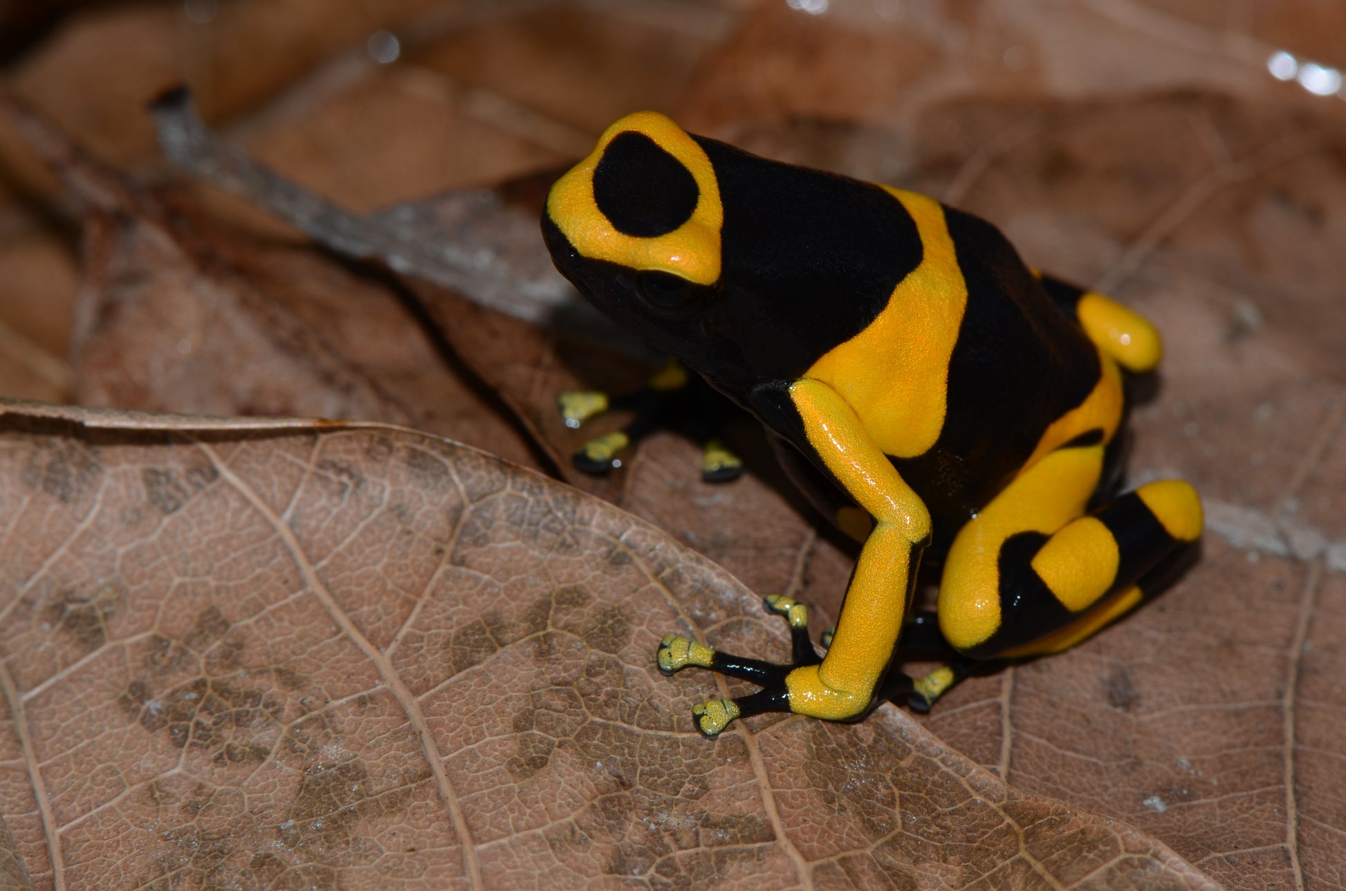This morph is the largest leucomelas morph represented in captivity. These robust frogs have beautiful orange/yellow bands crossing their body which contrasts wonderfully against the inky black. In most cases there are no black spots present in these bands. First introcuded in captivity from a few Imports of WC animals from Guyana in 2007/8.