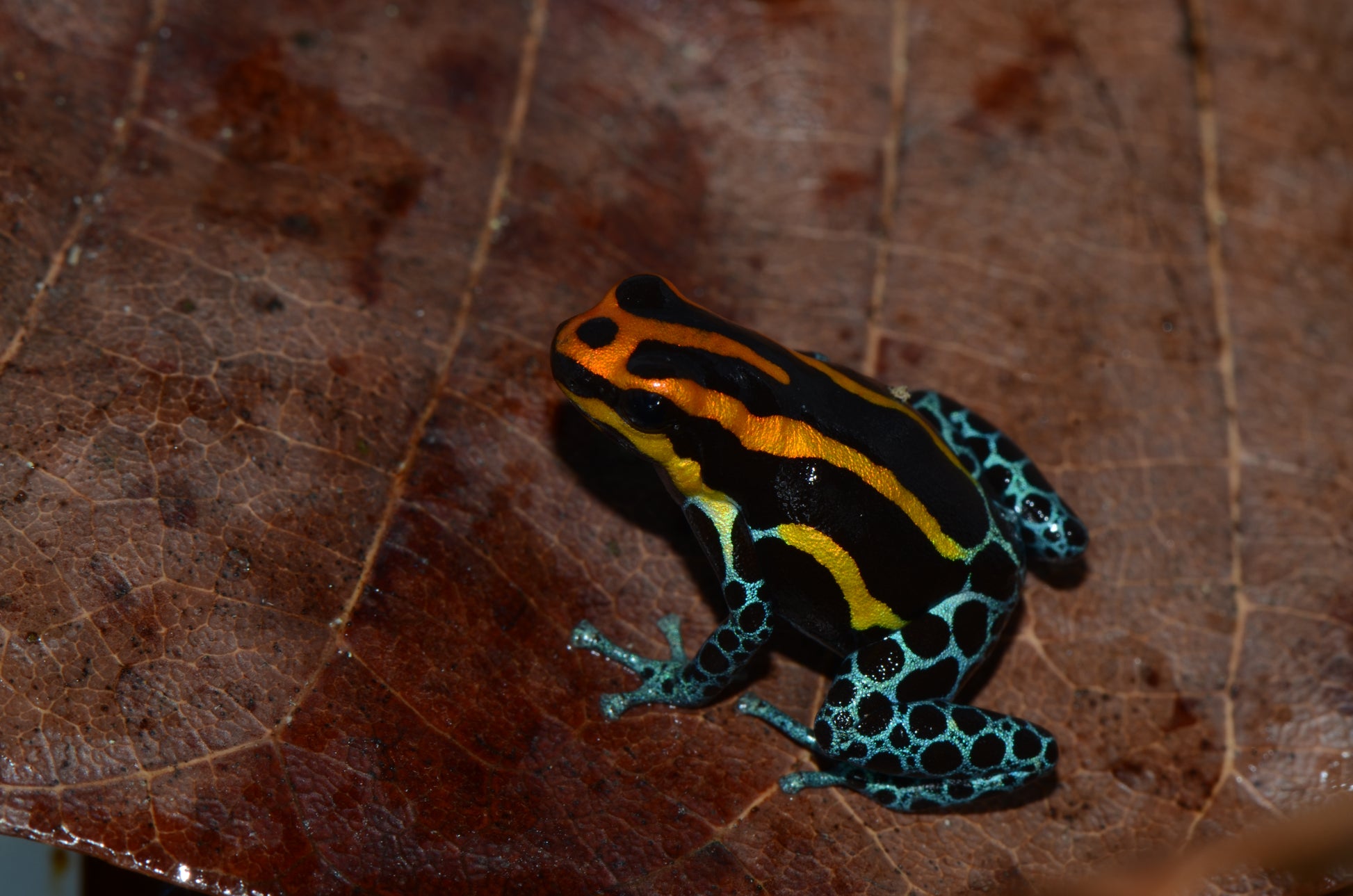 This stunning Ranitomeya is one of our favourites. This brightly coloured species thrives when kept as small groups in a modest sized vivarium. Several pairs will frequently breed communally in a bromeliad axil, film canister or other suitable location. Its distribution is restricted to lowland forest north of the Amazon River. Many phenotypes of this species exist in the wild.