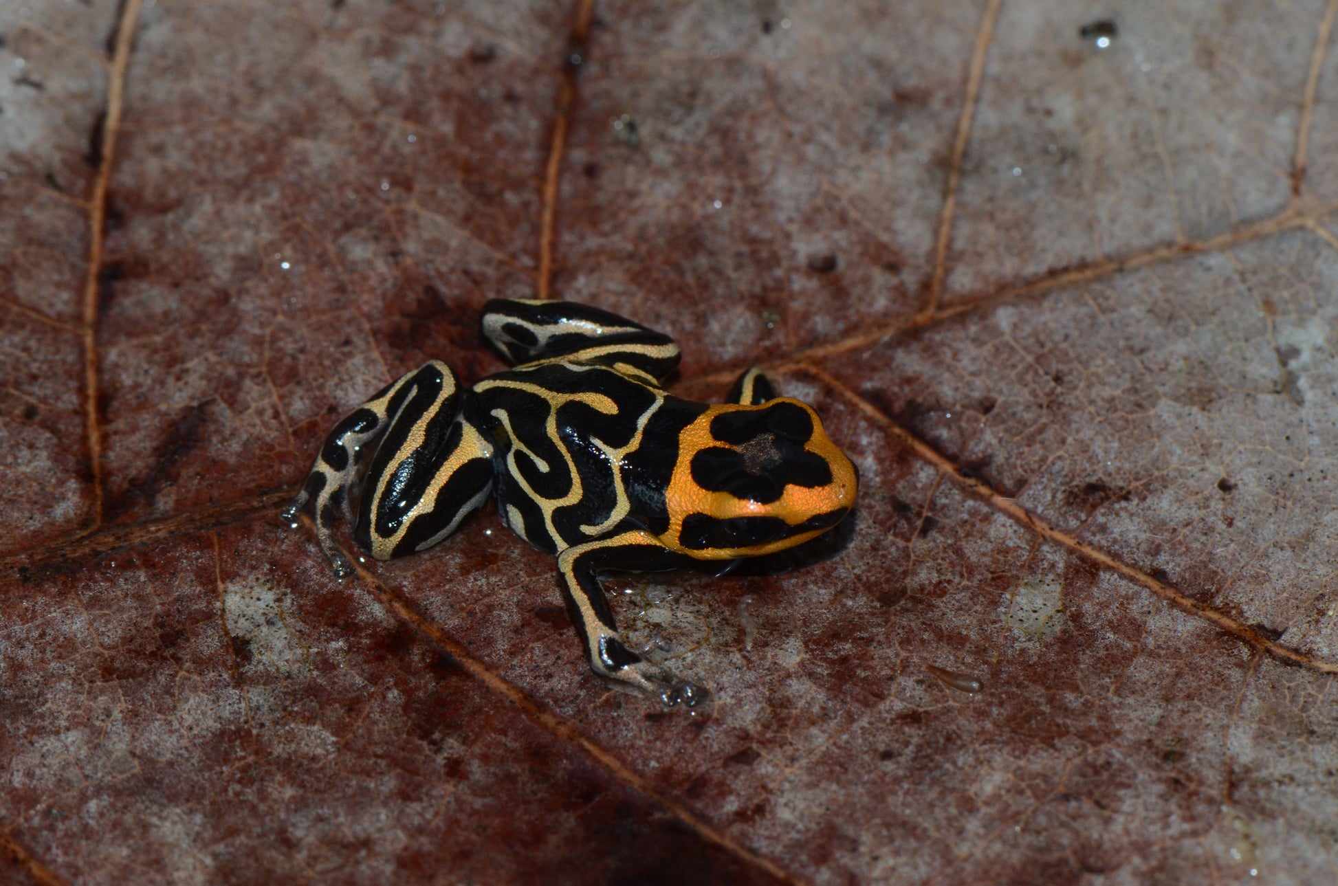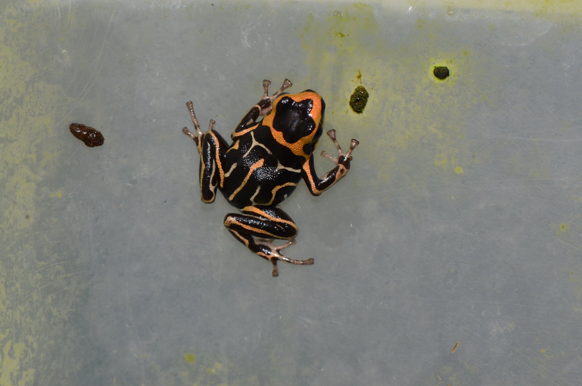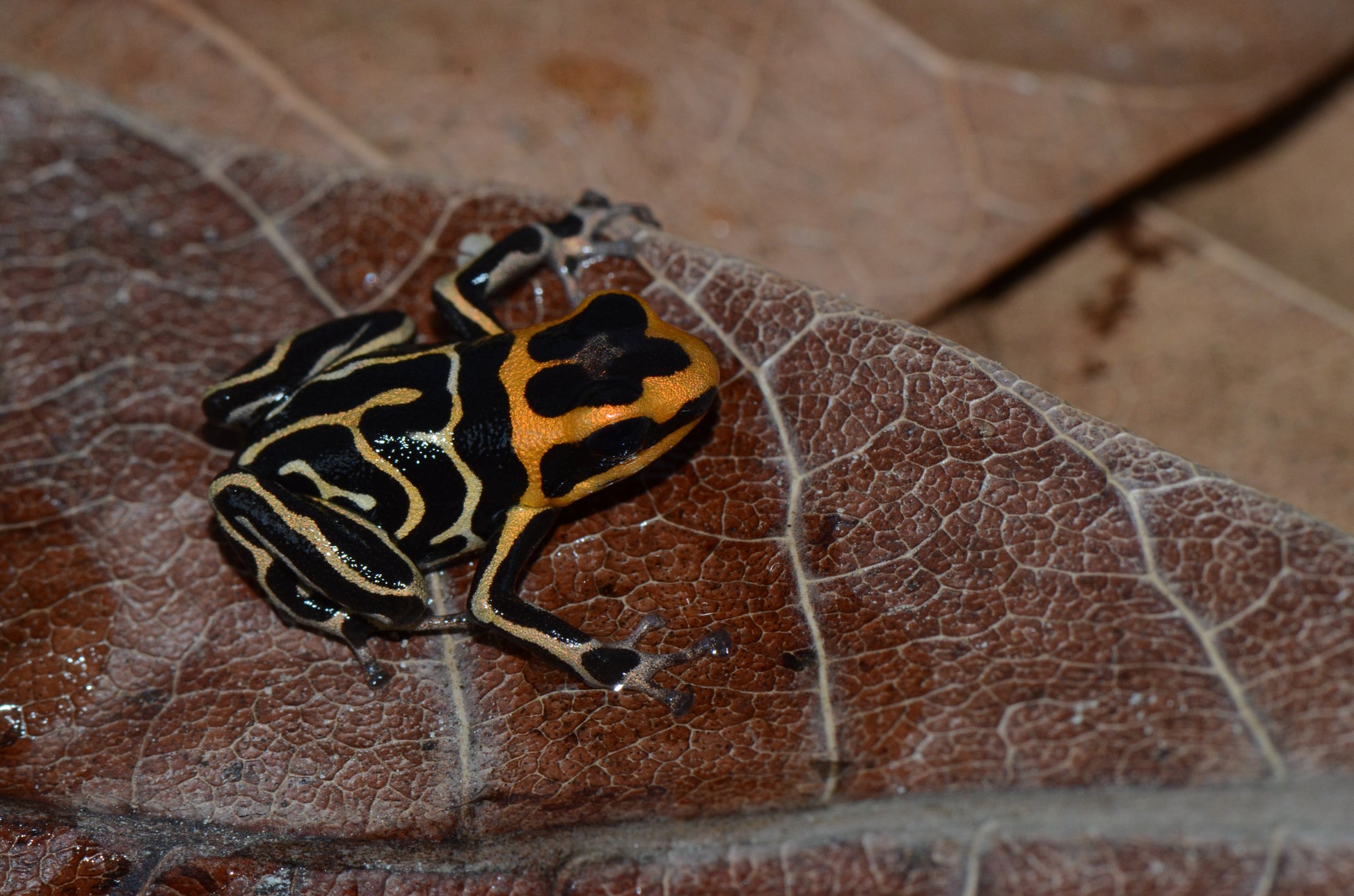This elusive phenotype is restricted to a small region at the eastern extreme of the species range. These frogs are incredibly alert and are more often encountered from up and within the understory vegetation than the other phenotypes of this species which are decidedly more terrestrial.